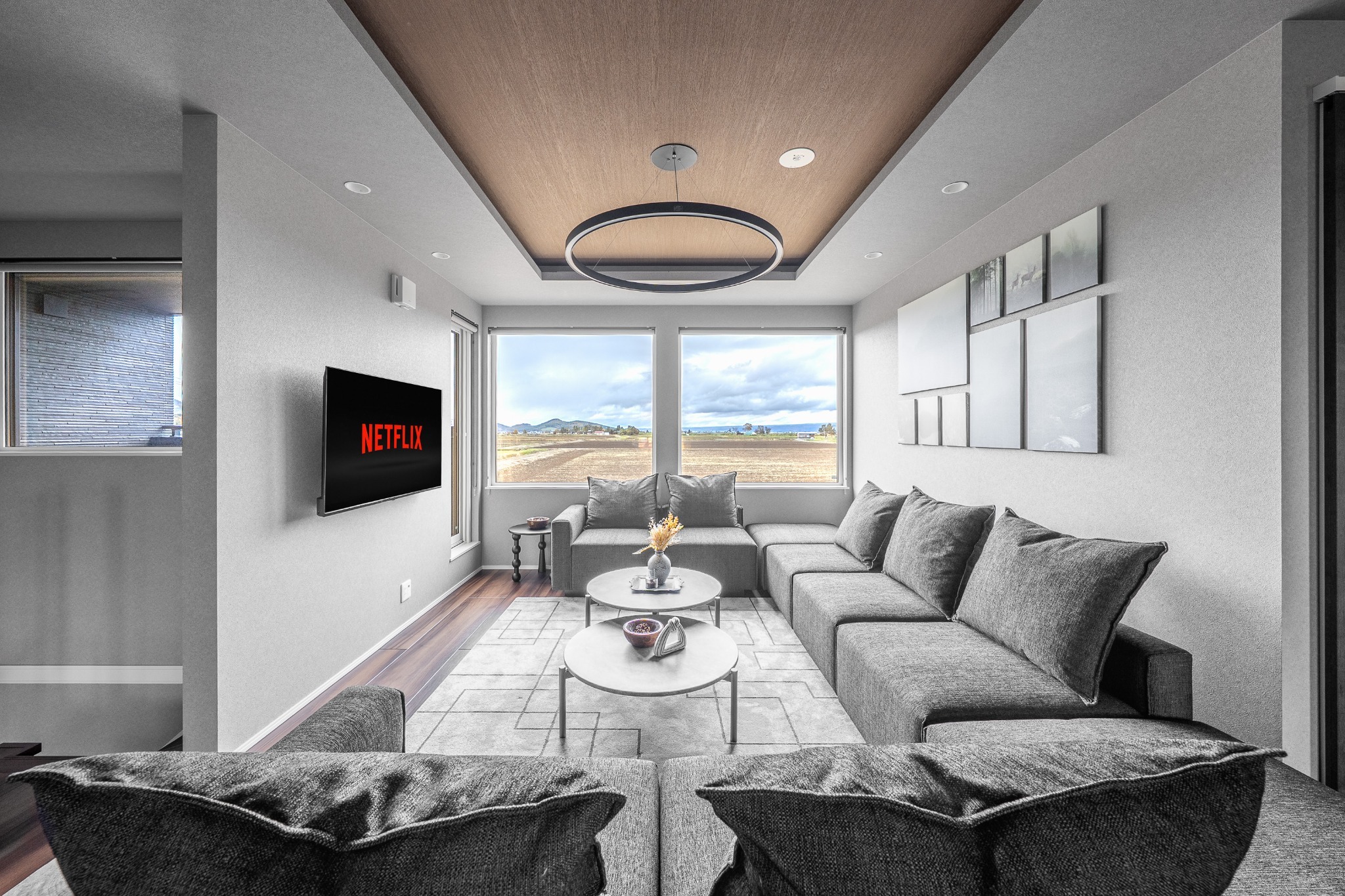 大きめのソファに腰かければ、時間ごとに変わるニセコの自然美を心ゆくまで堪能できます。