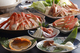かにが付いている会席料理、ゆでがに・かに鍋(お1人様用)・かにさしの3種と、かに以外のお料理もついているお料理でございます。