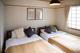 フローリングの床にカーペットを敷いています。シングルベットをふたつ並べていますが、3人目のお客様の場合、お布団でお休み頂く形になります。