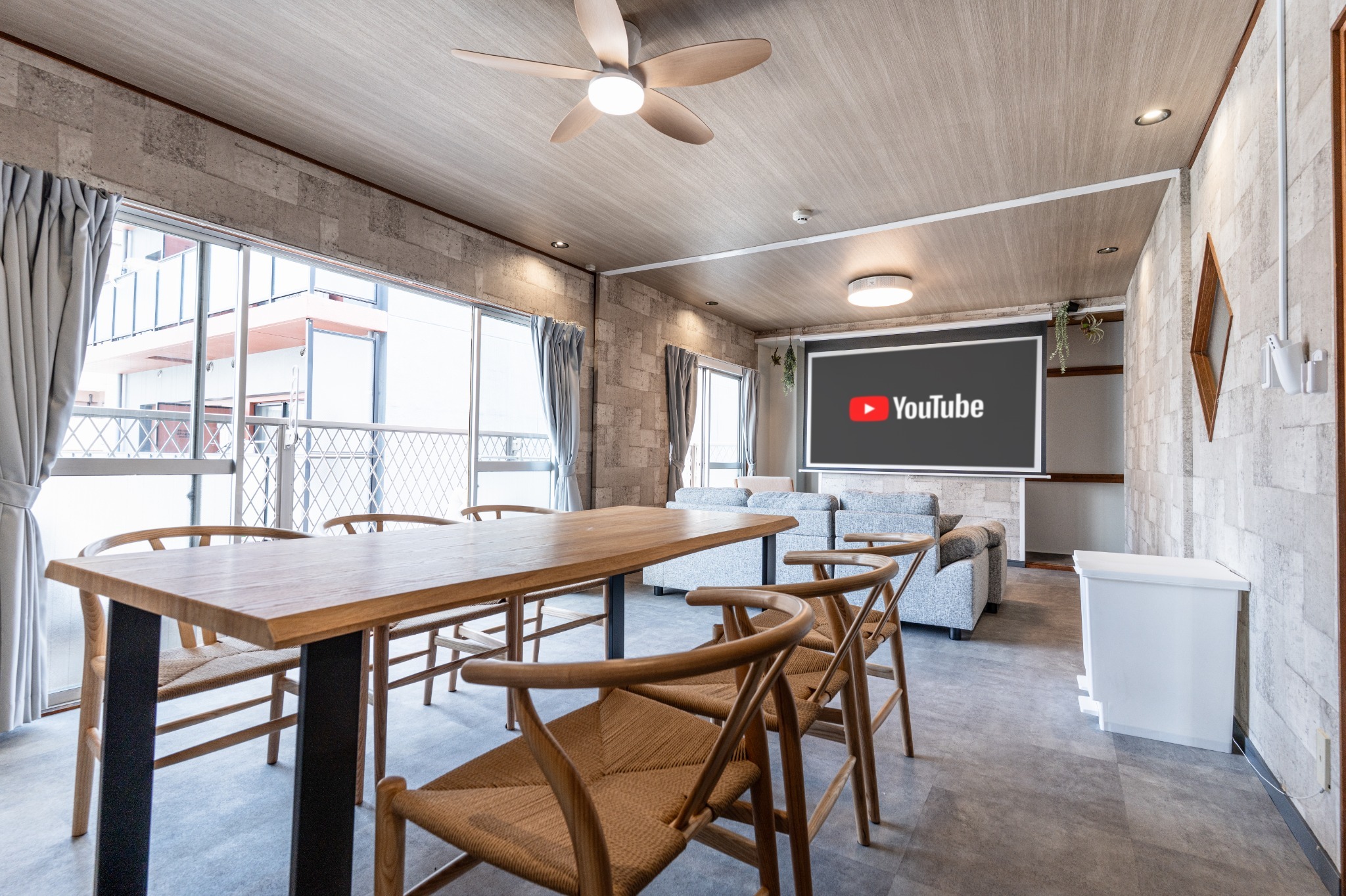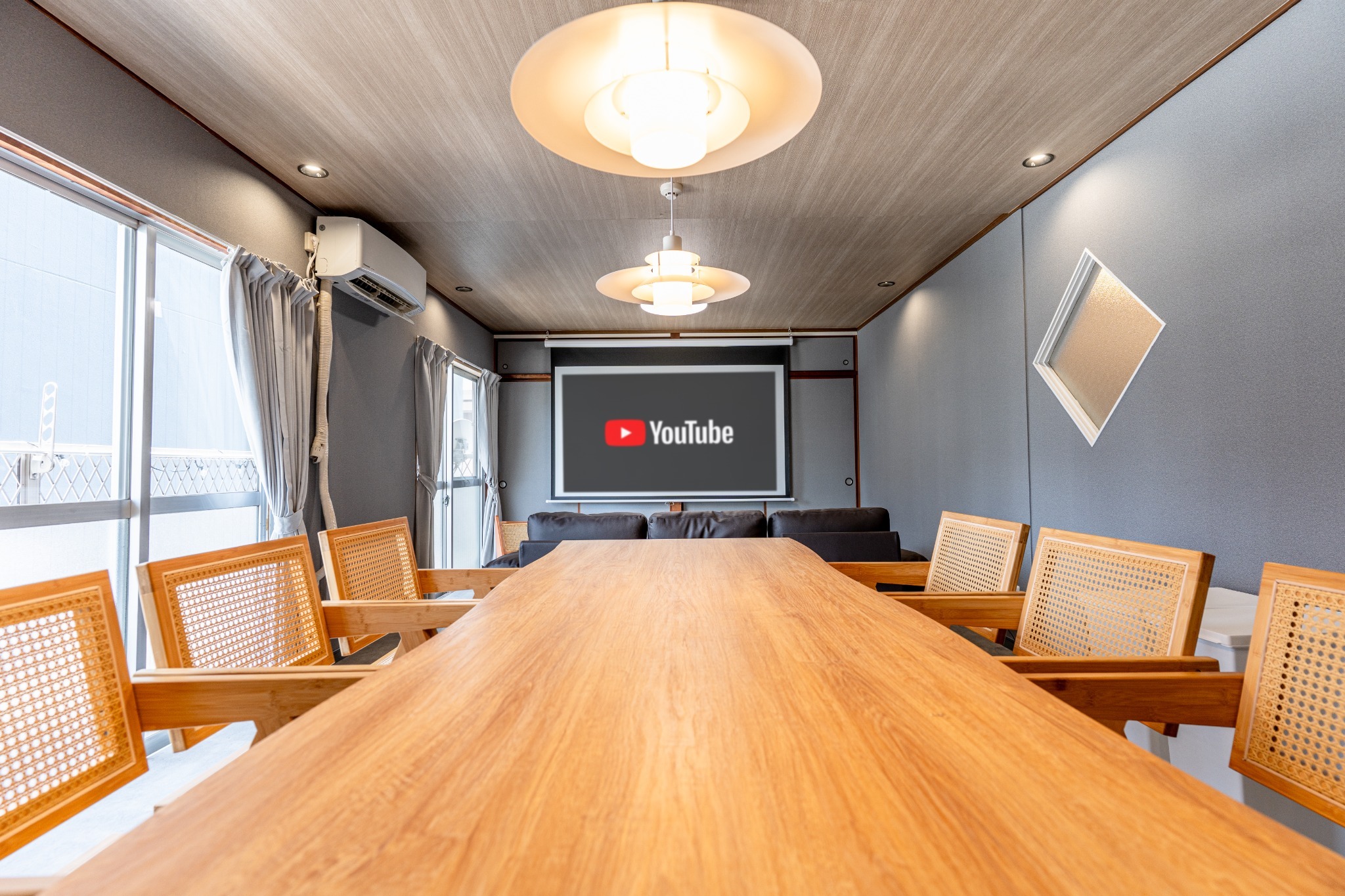 100m2の大空間と100インチのプロジェクターを搭載。