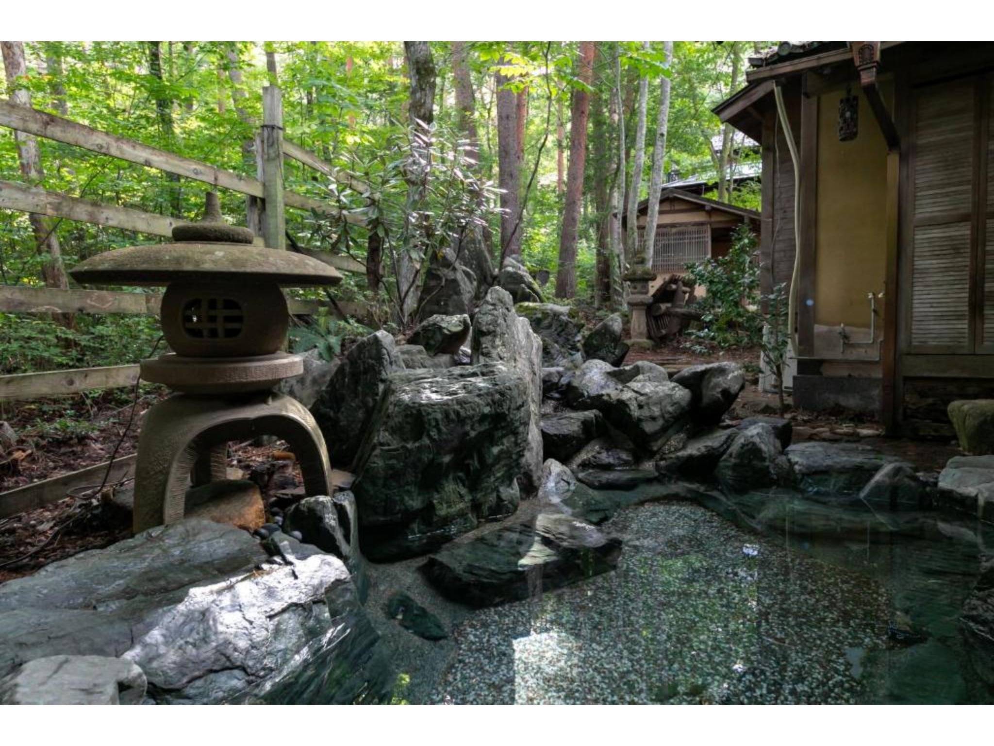 ? 24時間いつでも源泉掛け流し半露天温泉を貸切でお楽しみいただけます。