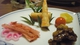 夕食はフルコースディナー。オードブル、スープ、メ...