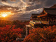 窓に広がる夕日と海 美食を奏で150有余年 間人温泉 炭平