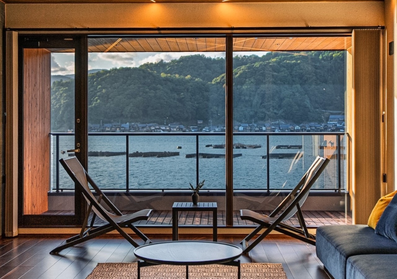 京の寺社仏閣建築にも携わった名工の手による純和室と窓の向こうに広がる景色が「海の京都」を感じさせてくれます。