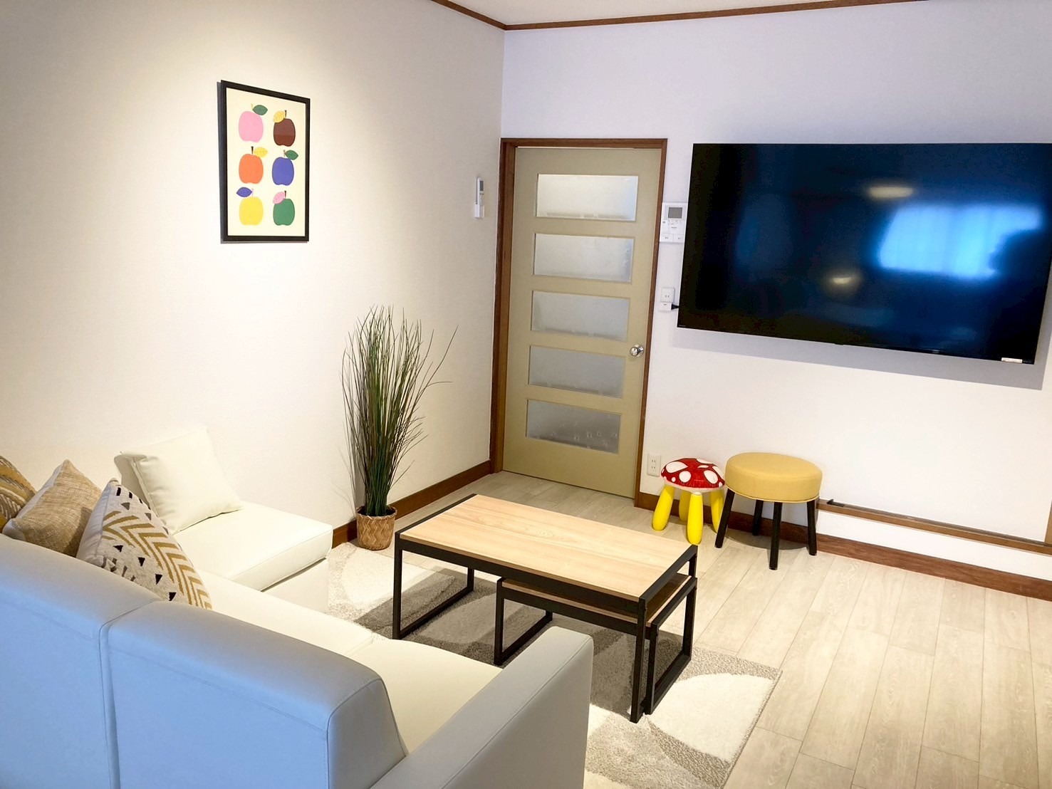 広々としたリビングルームには、50インチの大型テレビを設置していますので、映画やテレビ番組を迫力のある大画面でお楽...