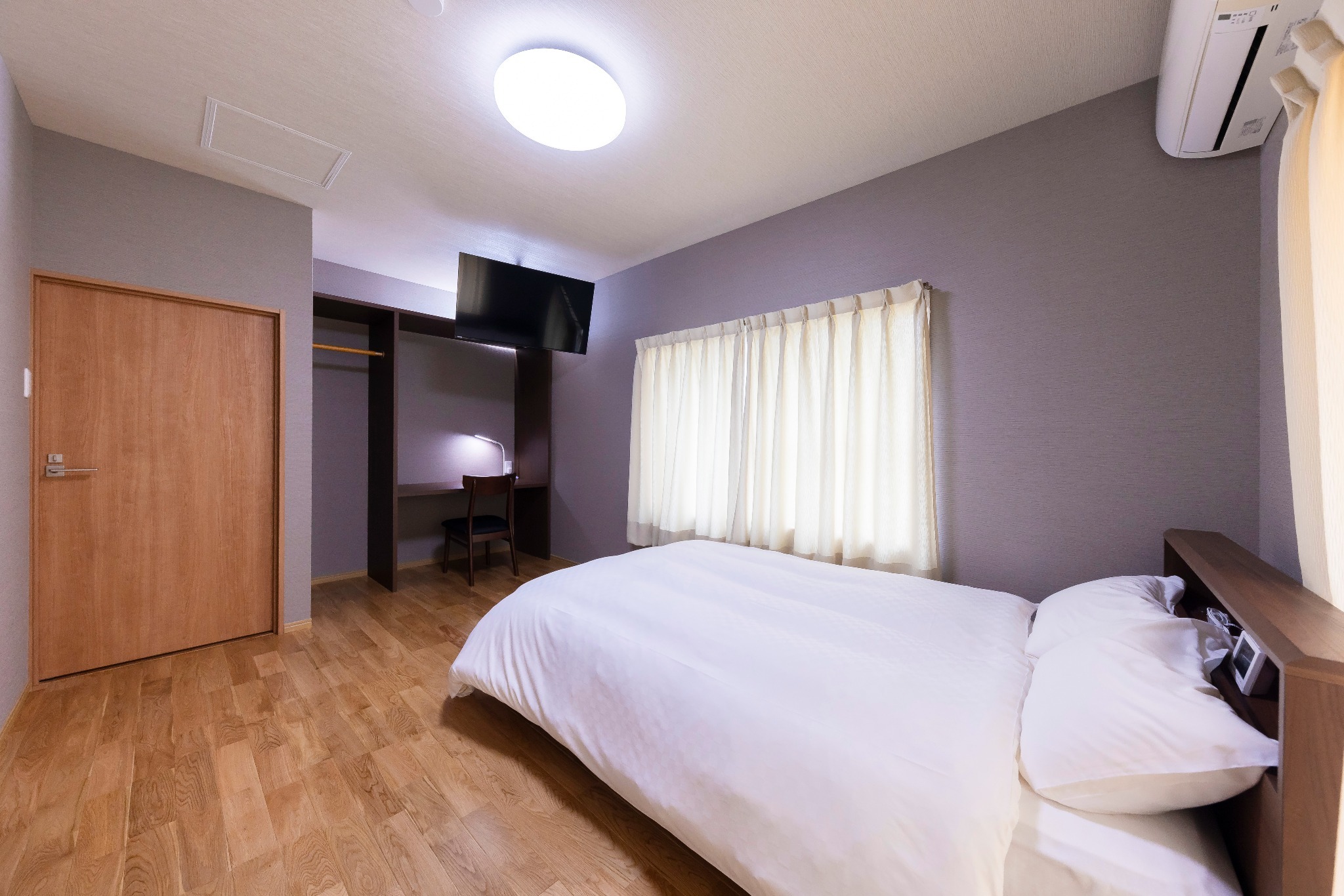 3室ある洋室には、WiFi、セミダブルベッド、スマートTV、ワークデスクや椅子があり、内鍵がついているためプライベート空間としてご利用いただけます。
