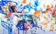音楽に合わせ絵を舞描くアートパフォーマー。
