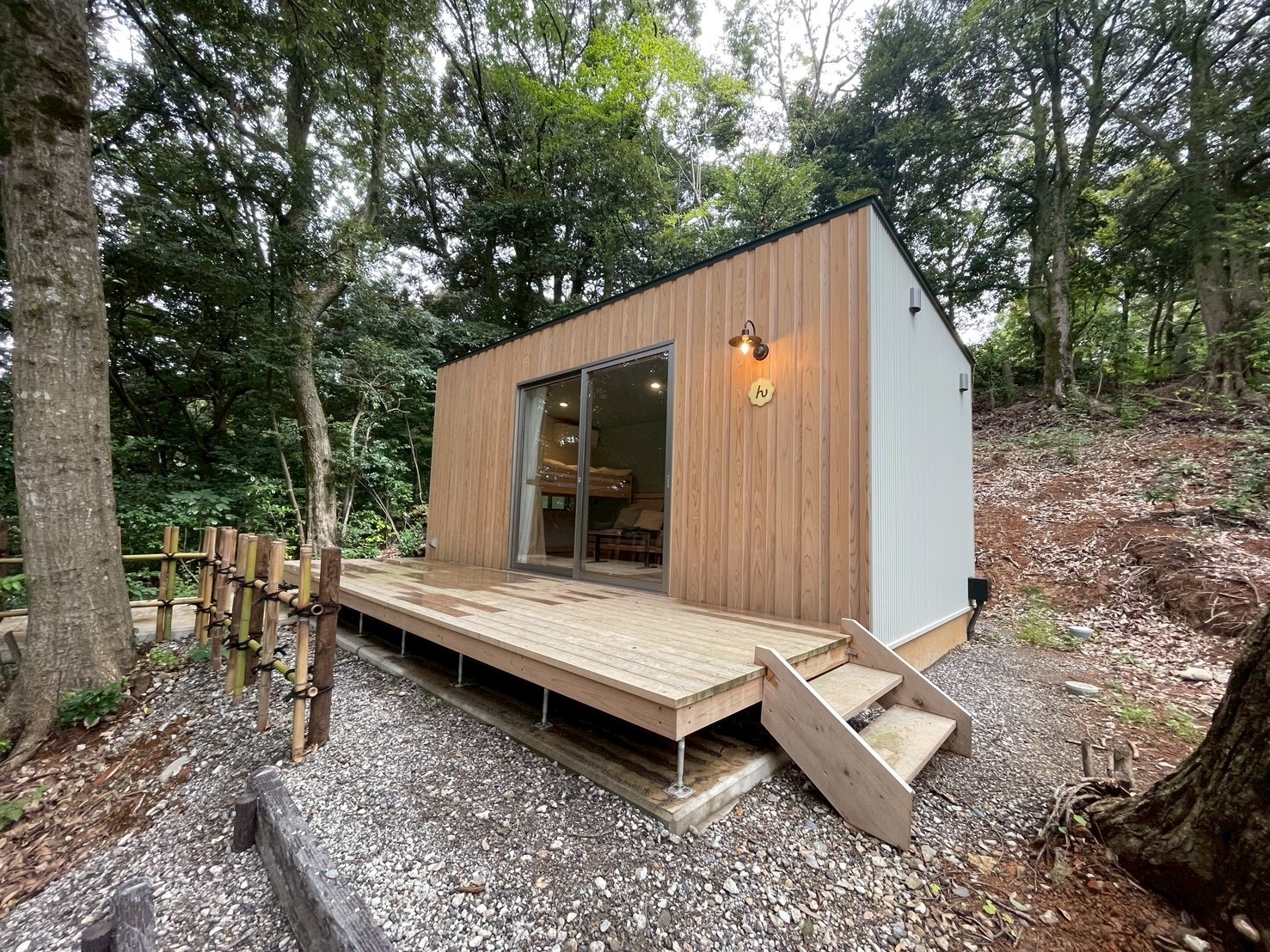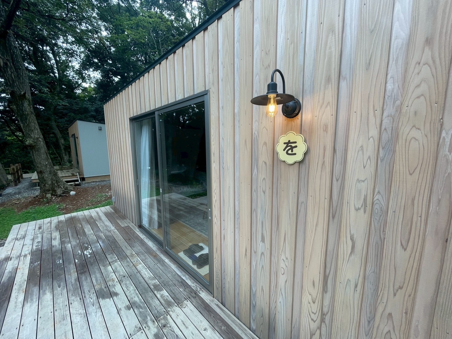 山代温泉の新名所「あいうえおの杜」の中に3棟だけ建つ「わをんコテージ」です。