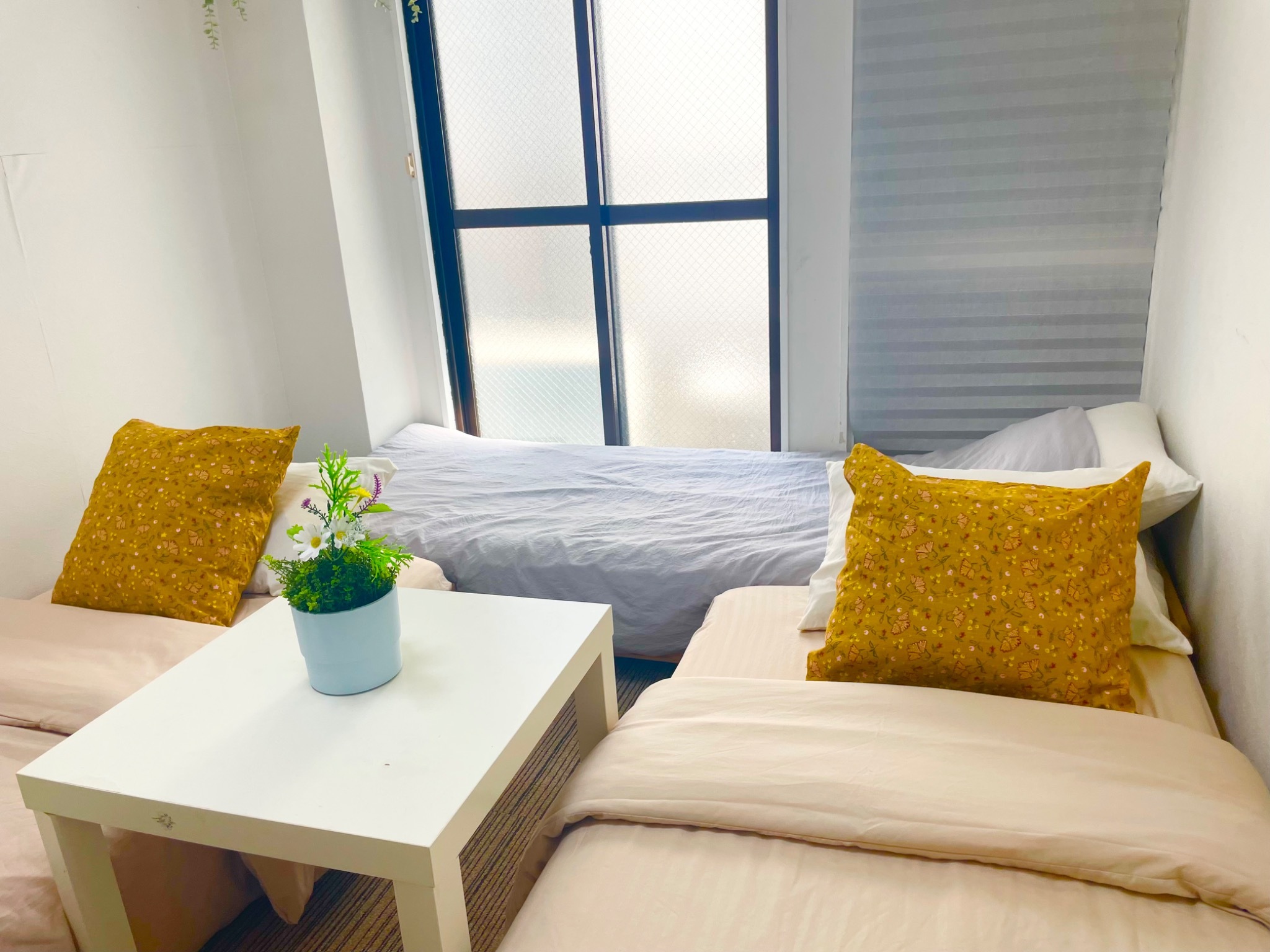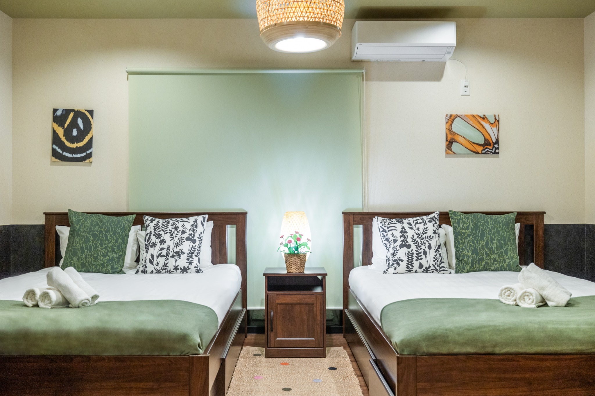 テレワークや長期滞在にも対応しています。 寝室構成(全2階・同一レイアウト)各階にダブルベッド2台